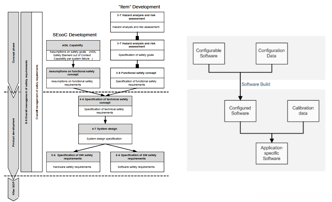 在AUTOSAR开发过程中, 建议在遵循ISODIS 26262.10标准时, 配合使用SEooC方法进行功能安全支持. 在SEooC框架中, 目标单元(例如一个软件单元)的安全目标或需求可通过假设来进行替代, 这些假设(如该单元需检测并处理的故障模式)是构建通用软件元素的基础. 当采用这样的通用元素来开发特定的安全系统时, 必须确保所做假设与特定系统的需求保持一致(例如通过这个软件的集成器来实现)