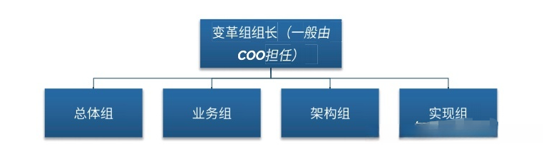 从战略规划与执行的中台角度出发,由于单一部门难以支撑这样的平台化战略,因此,需要将变革工作提升至企业级变革层次,并成立变革委员会,才能确保变革成功。建议的变革项目组织如下: