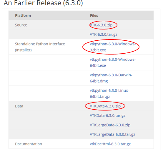 于下载网址http://www.vtk.org/download/ 处下载如下图所示相关包:
