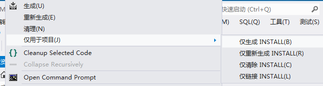 成功后, 再右键仅用于项目->仅生成INSTALL