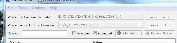 安装目录设为:E:\I_VTK\VTK\VTK 6.3.0一步步进行安装直至结束.