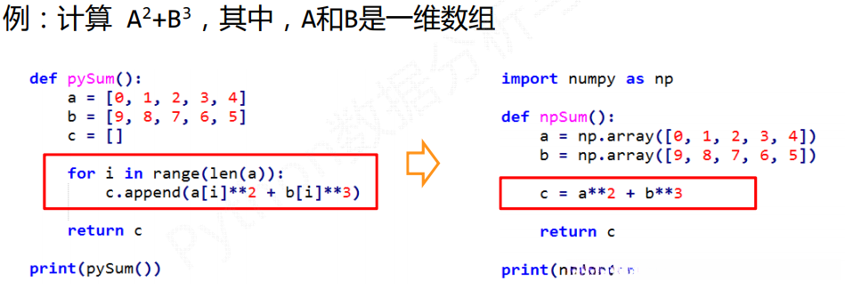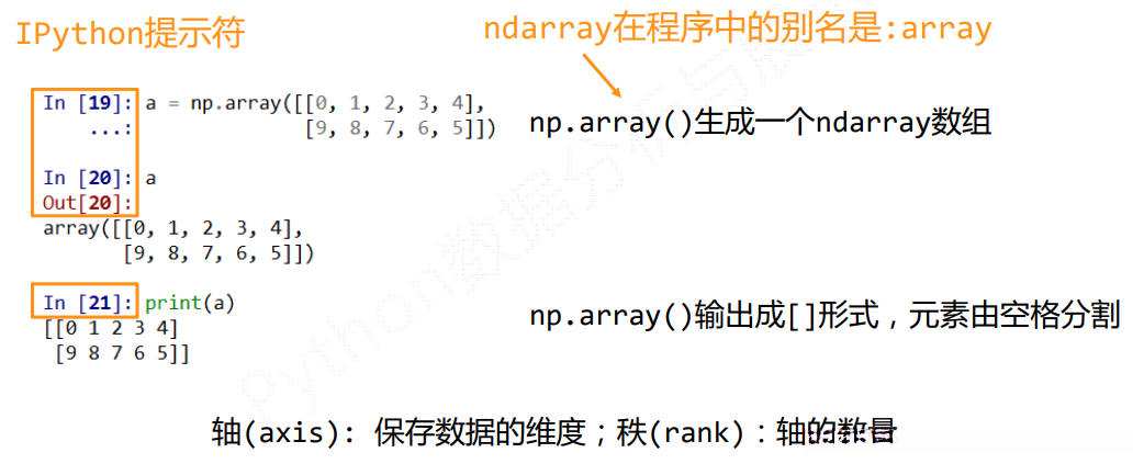 因为[0,1,2,3,4]为秩1,[9,8,7,6,5]为秩2 ,所以a.ndim的结果为2