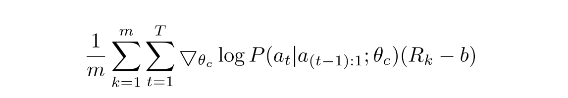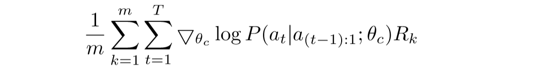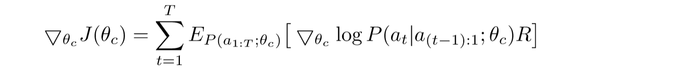 由于奖励信号 R 是不可微分的,因此使用策略梯度迭代的去更新θc\theta_{c},在本文中,使用到来自 Williams(1992)Williams (1992) 的强化学习规则
