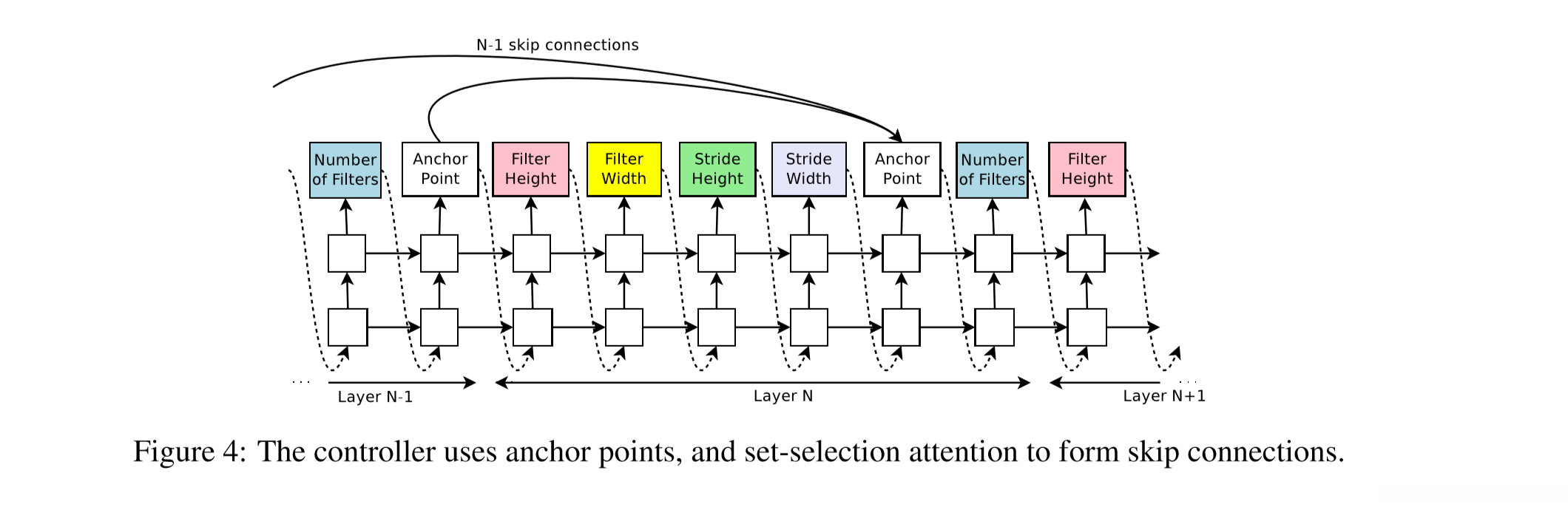 (1)每个 layer 添加一个 anchor point, 则经过 anchor point, RNN Controller 有一个 hidden state hih_i