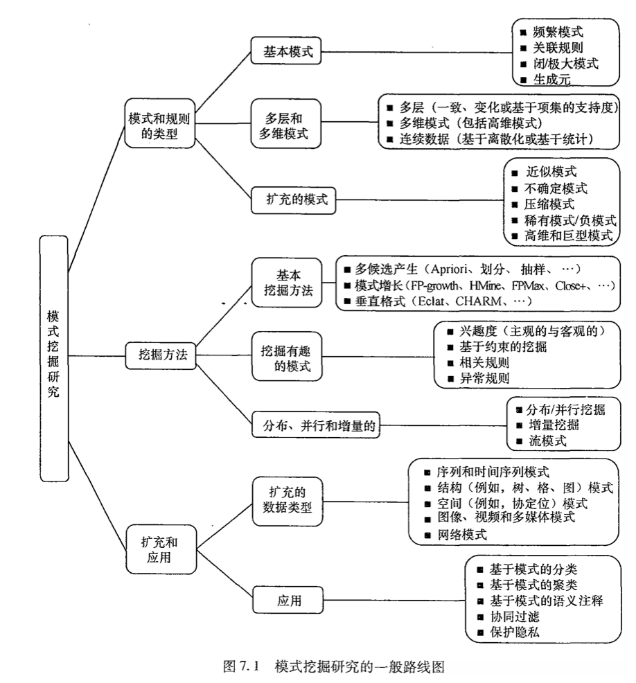 相较于频繁进行的频繁挖掘而言,在进行模式挖掘是一种更为普遍的方法。由于它不仅包含稀有现象还包括反向现象。但当没有歧义时**,** 两者可以互换地使用。