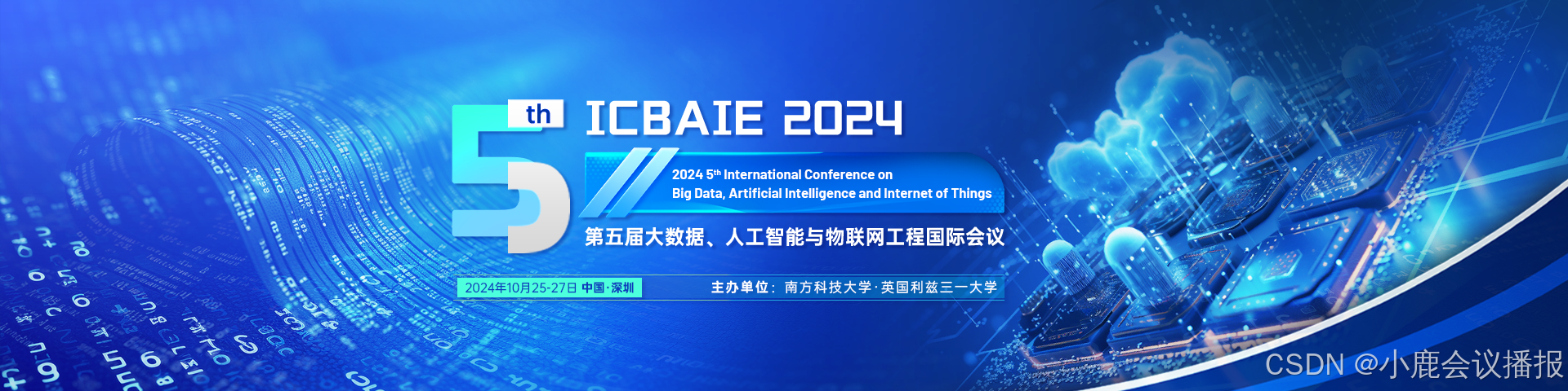 第五届大数据、人工智能与物联网工程国际会议(ICBAIE 2024)定于2024年10月25-27号在中国深圳隆重举行。会议主要围绕大数据、人工智能与物联网工程等研究领域展开讨论。会议旨在为从事大数据、人工智能与物联网工程研究的专家学者、工程技术人员、技术研发人员提供一个共享科研成果和前沿技术,了解学术发展趋势,拓宽研究思路,加强学术研究和探讨,促进学术成果产业化合作的平台。大会诚邀国内外高校、科研机构专家、学者,企业界人士及其他相关人员参会交流。