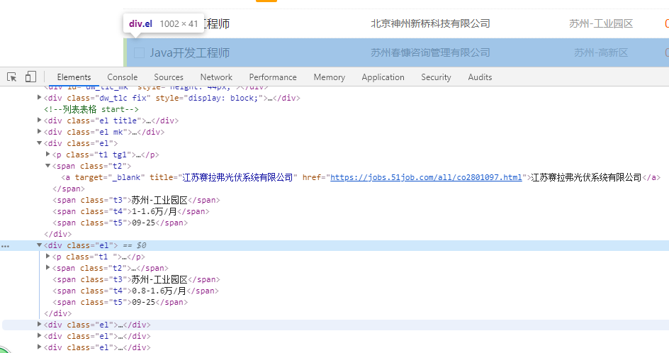 jobs_div = bsObj.find('div', {'id': 'resultList'}).findAll('div', {'class':'el'})