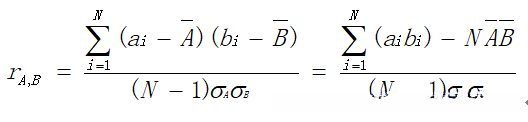 针对连续数值数据的情况而言,在计算Pearson相关系数时,默认情况下如果变量间的协方差为零(即r_{A,B}接近于零),则认为变量间无显著的相关性;当r_{A,B}小于零时,则表示变量间存在负相关关系;当r_{A,B}大于零时,则表示变量间存在正相关关系。