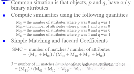 非对称属性(asymmetric attribute):出现非零属性值才是重要的