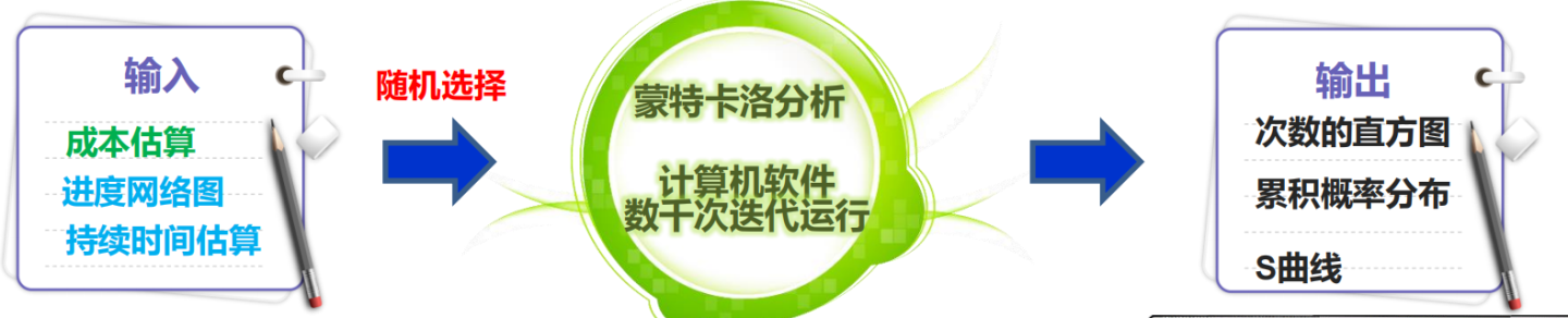 ⚫ 实施定量风险分析—工具与技术:数据分析----模拟(P433)