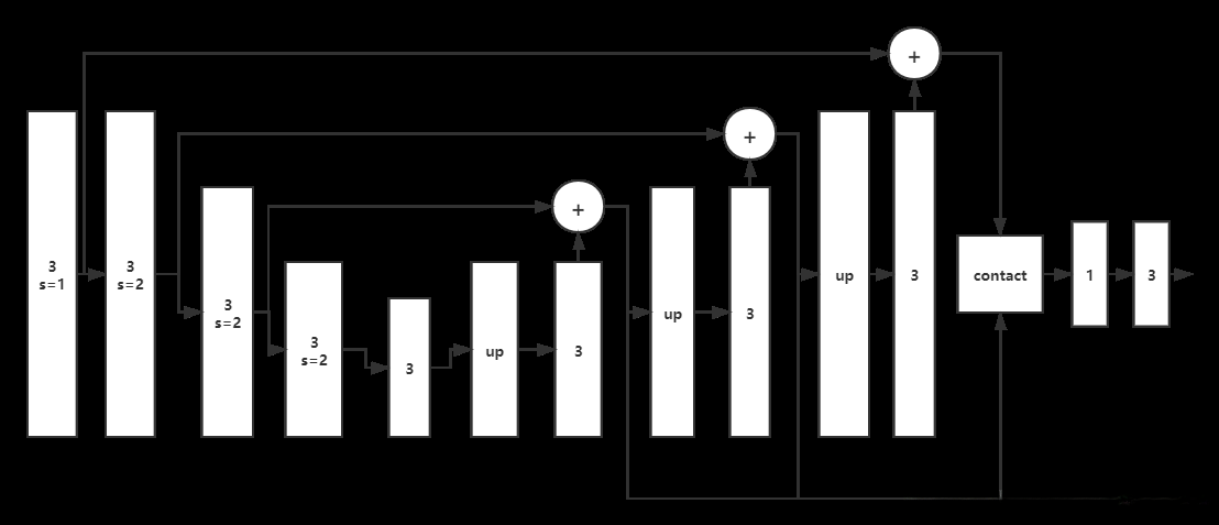 输入由分解模型得到的光照分量I和反射分量R进行连接。未对第一个及最后两个卷积操作应用relu激活函数。