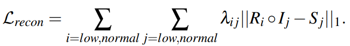 损失函数包含三个部分:重建损失、反射分量损失、光照分量损失。