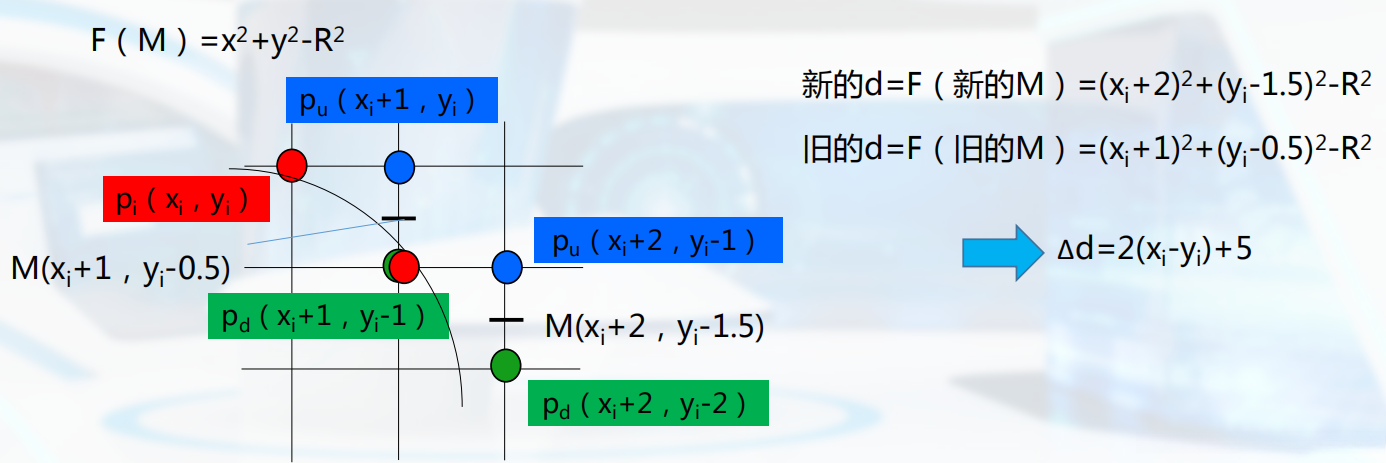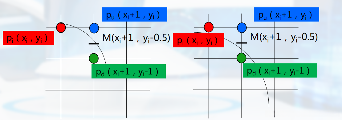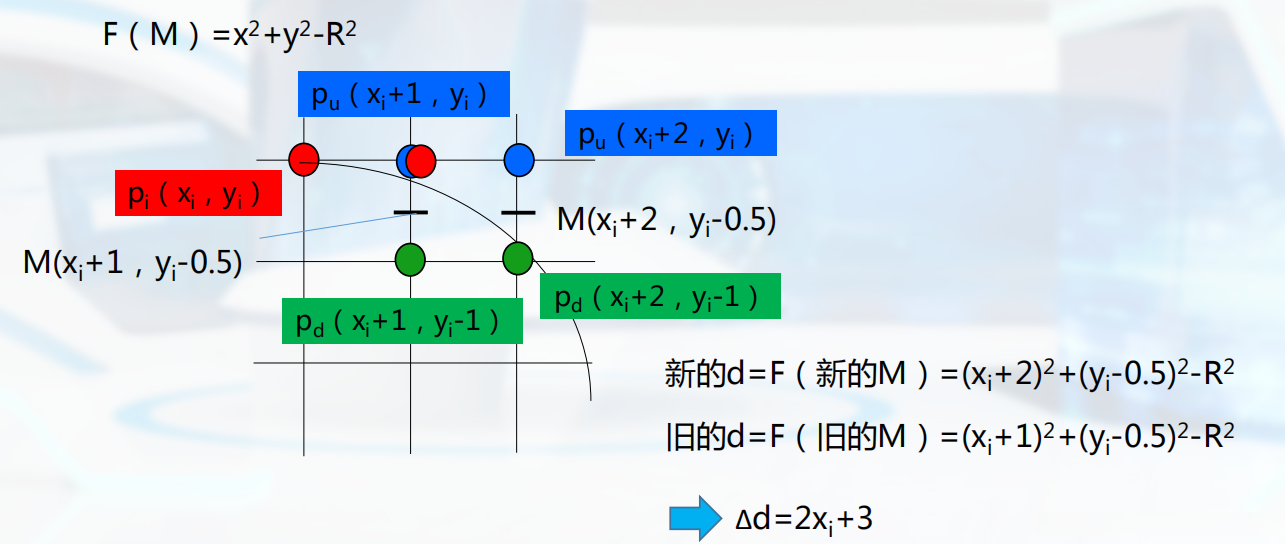 依据什么来取点呢?我们可以将中点M带入圆的隐式方程来确定y的取值。