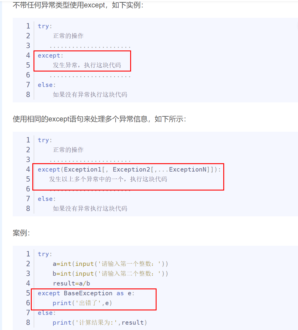 列表或元组索引越界 | 字典中不存在指定键 | 未定义变量 | 代码存在语法问题 | 导入失败 | 断言失败 | 对象不具备该属性 | 缩进异常 | 除以零的情况发生