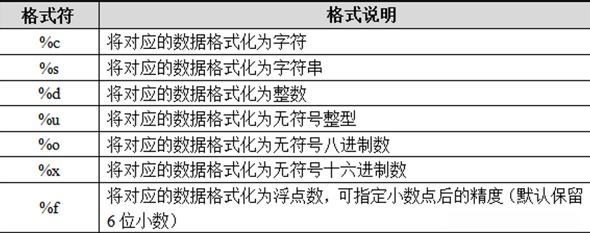 不同的占位符为不同类型的变量预留位置,常见的占位符如下所示:
