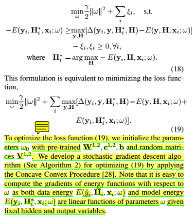 c.为了求解公式19,首先采用预训练的参数初始化参数w0,同时提出了解决这个问题的随机梯度算法来处理优化问题;