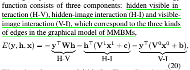 本文强调选择一个适合的边界罚函数对于MMBM高效地学习是至关重要的;这里以单层MMBM为例,从该模型的能量函数可以发现,该能量函数由三部分组成H-V/H-I/V-I,它们则分别对应MMBM图模型中三种边界;