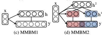b.如果省略掉图像依赖相关部分,则单层的MMBM退化为RBM,而双隐含层的MMBM退化为ShapeBM,此时前面用于解决该模型的问题,可以适用于MMBM模型