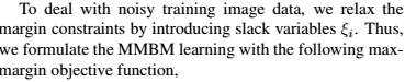 此时,对MMBM学习重新采用最大边界目标函数的形式重新表述为18式;同时,此时18式等价于求解19式中的最优化问题;