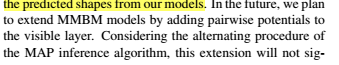 首先,在这里介绍了两种玻尔兹曼机的变体,RBMs和ShapeBM为模型化对象形状;其次描述了本文提出的条件模型和最大后延推断算法。