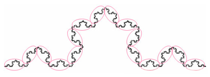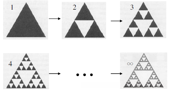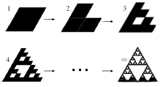 * 如下图:不同的初始图形,经过同一种迭代方式,多次迭代后,都形成了形状一致的三角形模型。
