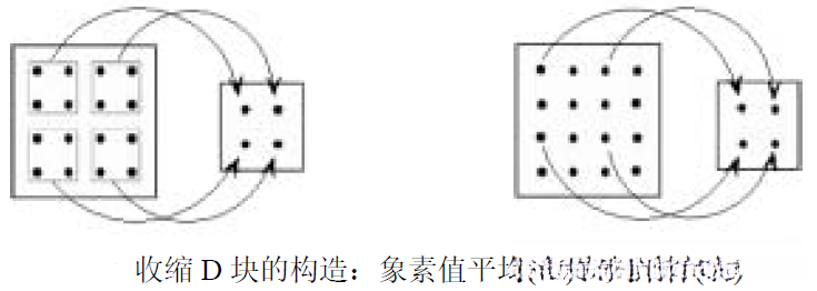- 二:定义域区块D,收缩: * D块要与R块比较,首先要收缩成与R块一样的大小。收缩方式通常用两种:像素均值和欠采样。如图: