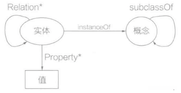 语义网络是一种以图形化的形式通过点和边表达知识的方式。语义网络中的点可以是实体、概念和值(Value)。知识图谱中的边可以分为属性(Property)与关系(Relation)两类。语义网络中的边按照其两端节点的类型可以分为概念之间的子类(subclassOf)关系、实体与概念之间的实例(instanceOf)关系,以及实体之间的各种属性与关系。