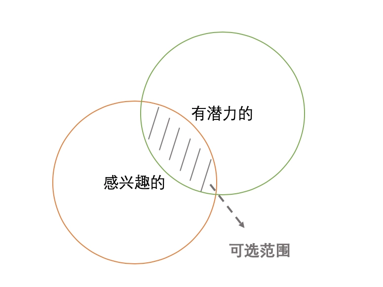 因此,在这一时期的关键在于,在个人兴趣与未来潜力两者结合处确定自身的中心定位。具体来说,在下图所示的位置上确定核心