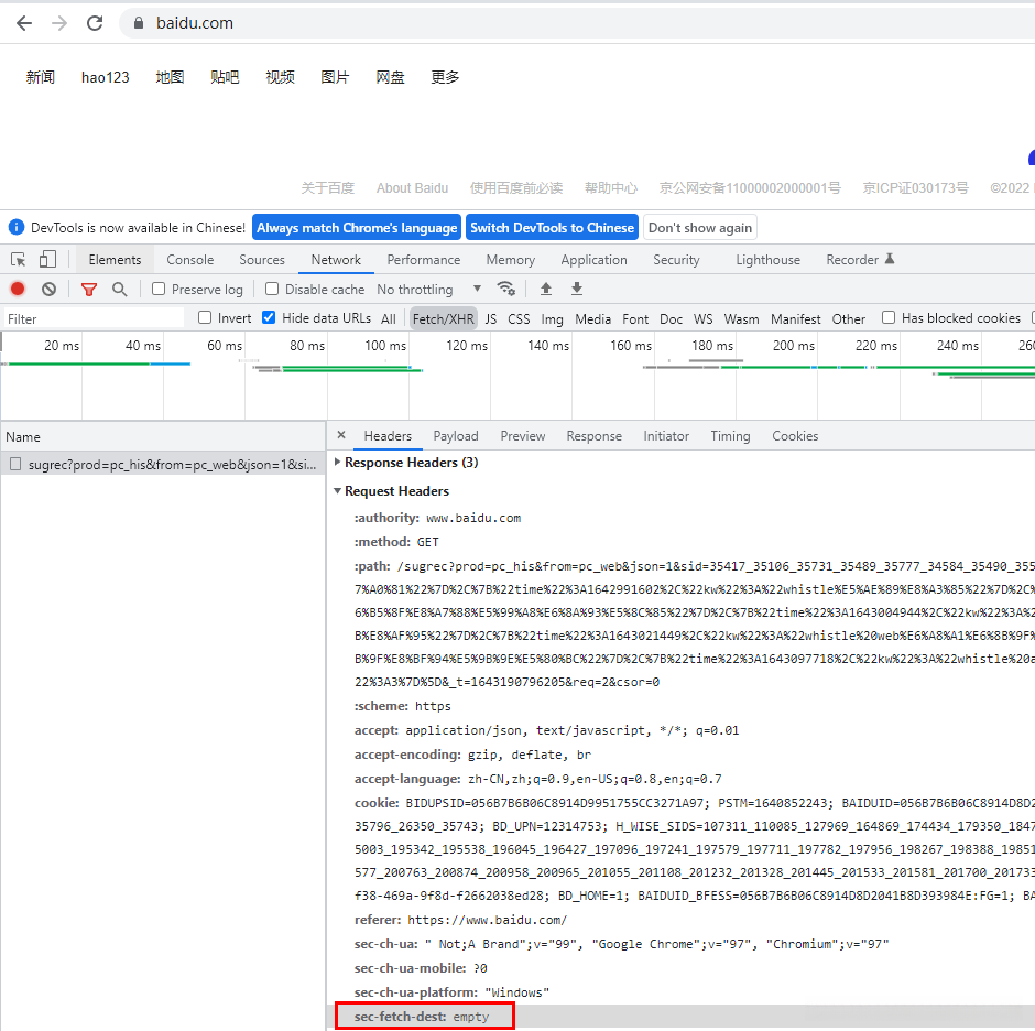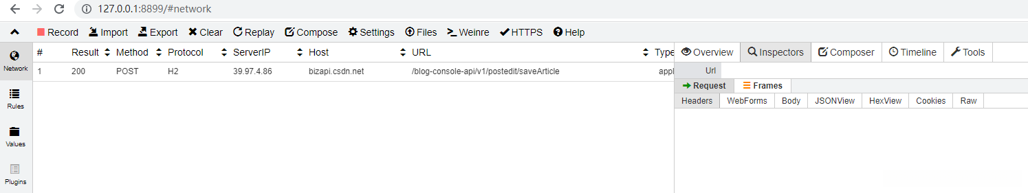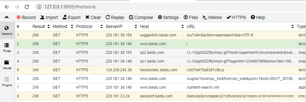 采用whistle模式或默认采用whistle自动切换后,此时浏览器发出的请求将被whistle进行抓取。
