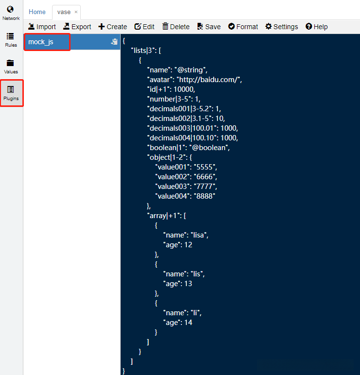 whistle 配备了一个功能强大的 mock 数据插件,能够配合 js 语句和 mock 语法生成数据。