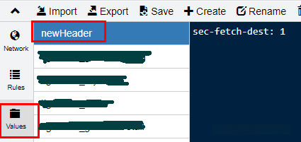 修改请求头:使用规则 pattern reqHeaders://{newHeader},newHeader 可引用 values 变量。