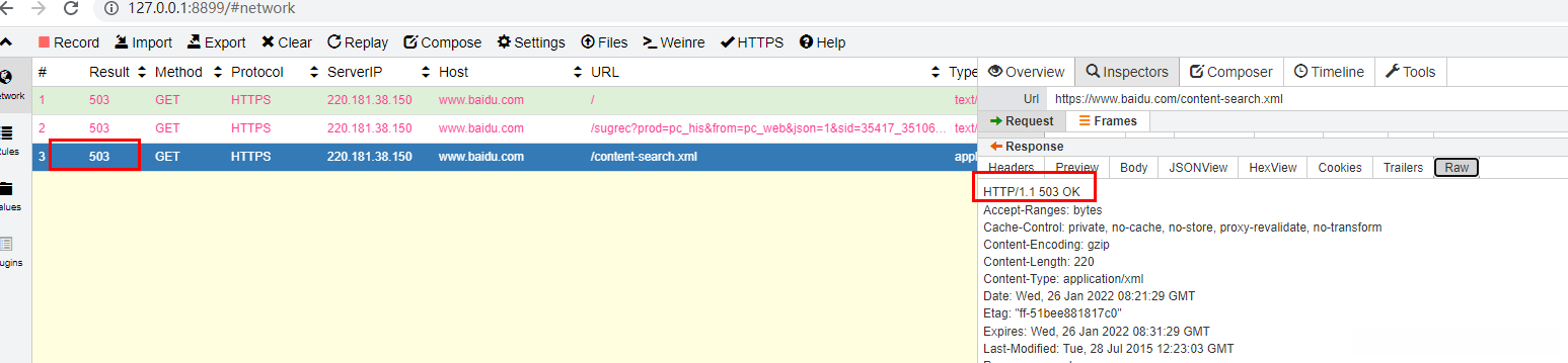 修改状态码后,whistle及浏览器均显示为修改后的状态码