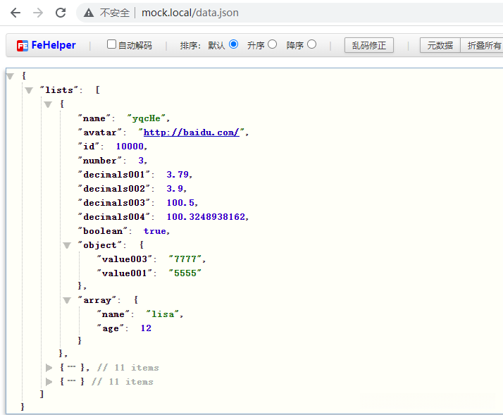 mock 数据:通过插件生成数据,支持 HTML 模板语法。