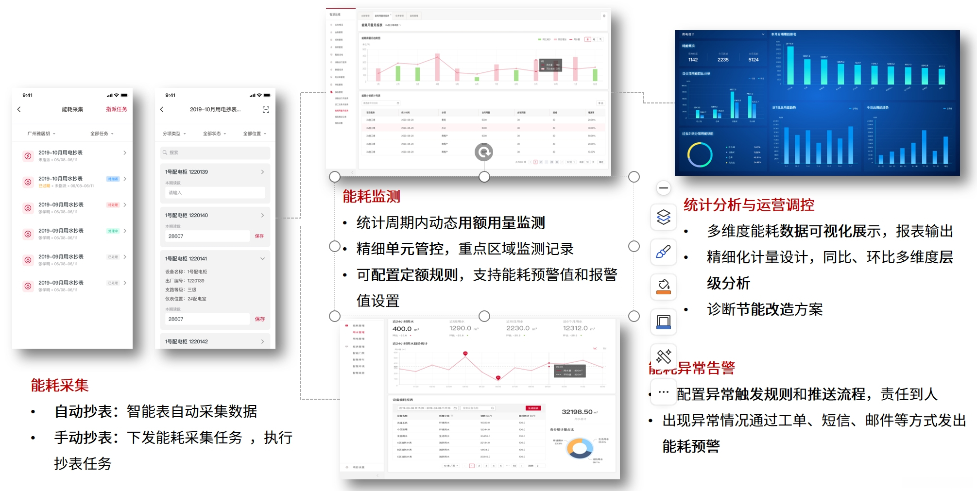 碳资产管理: 公司具备多样化的能碳数据可视化功能,包括但不限于能量消耗与能源消费分布图(即能碳地图)以及能源利用效率分布图(即能耗-碳耗拓扑图)。通过该系统,可实现对能源消耗与浪费程度的精准量化,并建立完善的数据驱动管理体系,涵盖从能源消耗到资源浪费全生命周期管理,实现能源消耗总量控制与资源浪费程度监测两大核心目标,助力空间领域运营决策分析,并为企业/政府开展 carbon 资产核查工作提供有力支持
