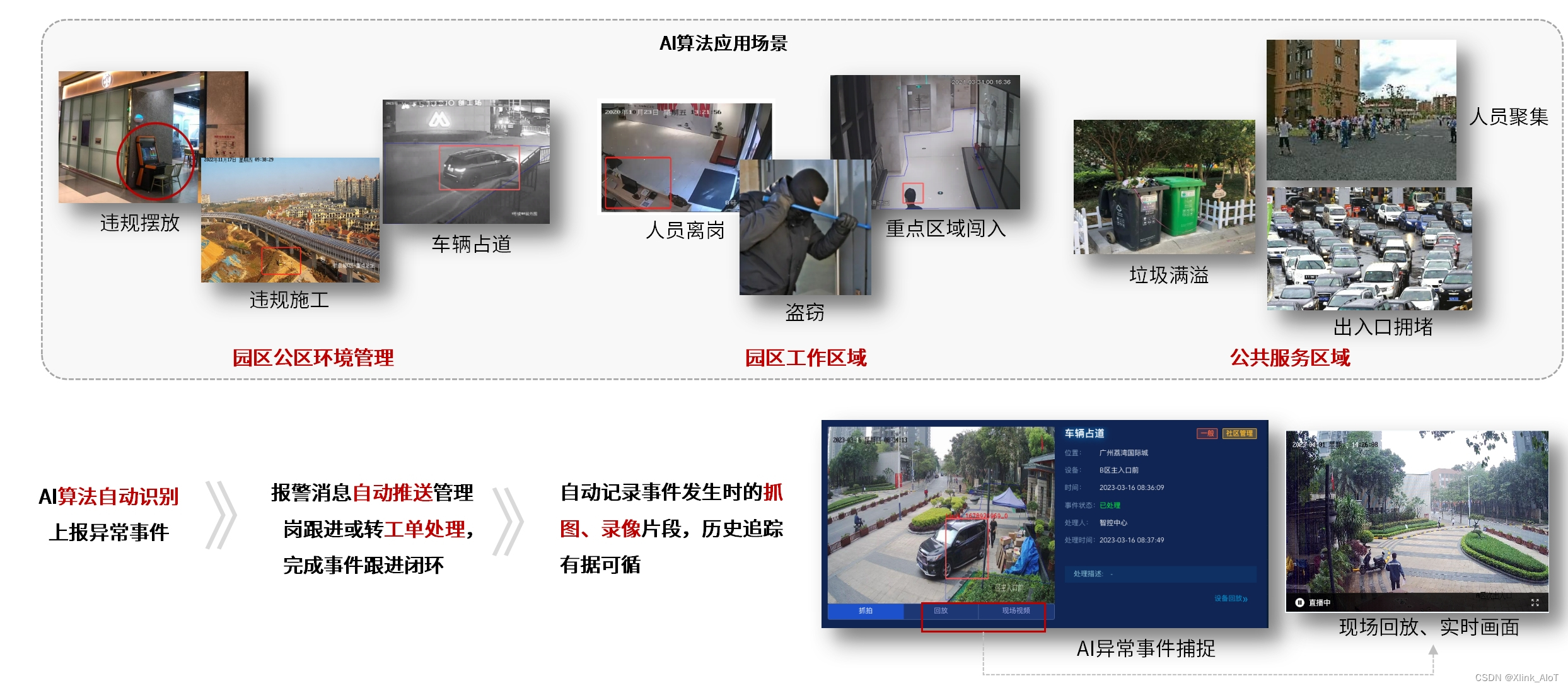 借助先进的AI算法模型,在园区周界入侵、人员密集区域及高流量访客区域实施事前风险预警,在事件发生时快速启动应对措施,并通过事后评估总结经验教训,从而有助于提升园区安防管理体系的智能化水平。