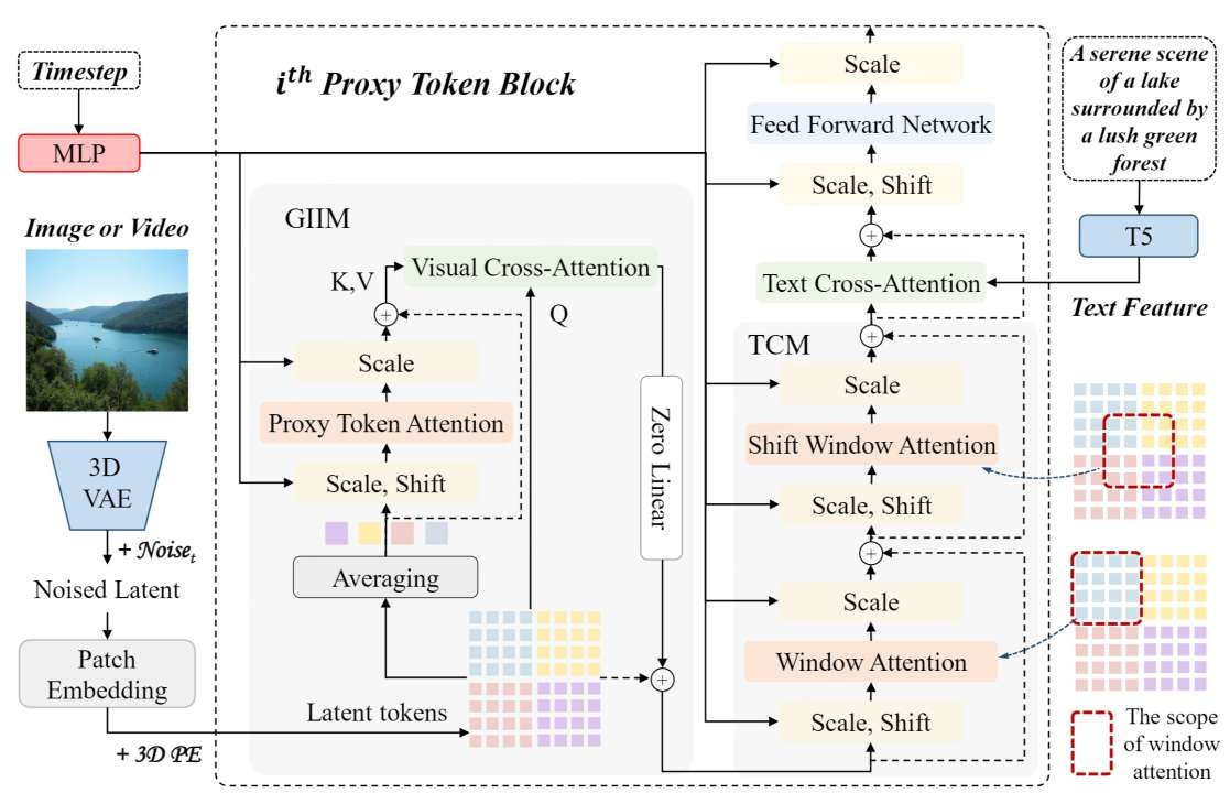设计了代理标记化注意机制,使得PT-DiT无需结构调整即可适应图像和视频生成任务。