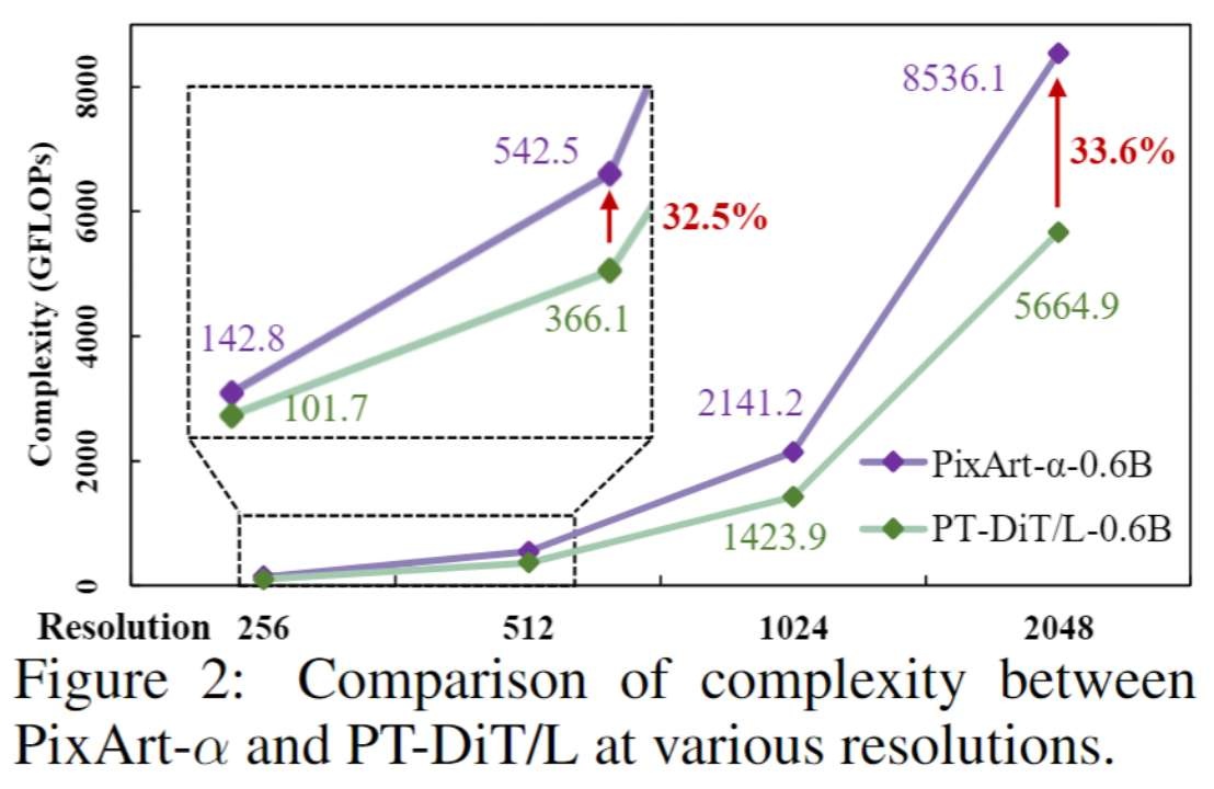 Diffusion Transformer模型由于全局self-attention,其计算复杂度与序列长度平方成正比,导致其在高分辨率图像和长时间视频生成任务中面临计算成本高的问题。