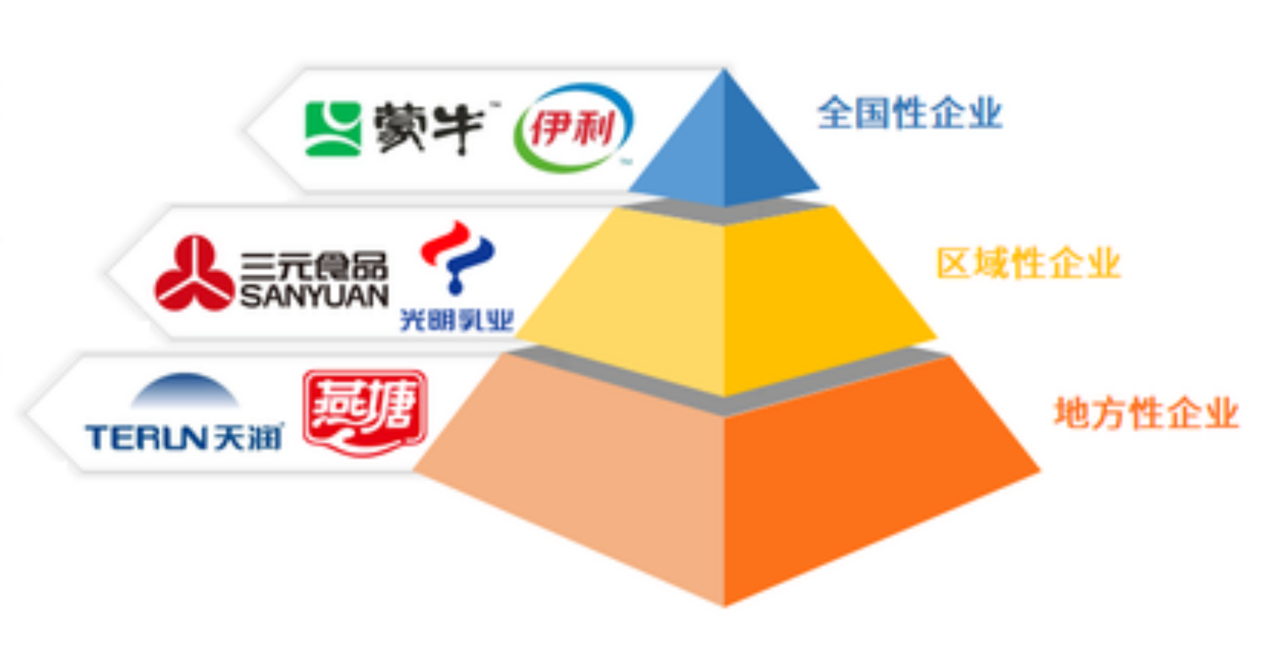 处于行业领先地位的第一梯队的全国性企业拥有全面覆盖全国各地的销售网络,在行业内占据主导地位的收入水平与市场占有率使其成为不可撼动的领军人物目前主要由蒙牛集团和伊利集团两大巨头主导