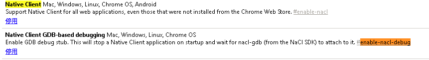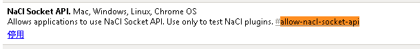 将 #enable-nacl、#enable-nacl-debug、及 #allow-nacl-socket-api 设为启用