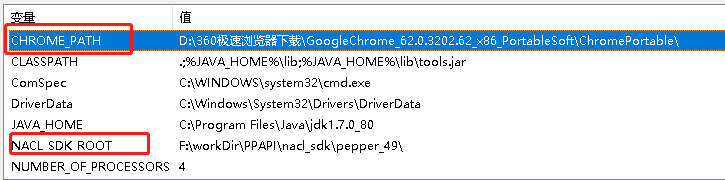 配置环境变量:“NACL_SDK_ROOT”: nacl_sdk (本文为 papper_49) 的路径