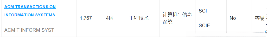 ACM汇刊智能系统与技术具有较高的学术影响力]其影响因子为2.973并且被引次数位于该领域相关期刊的前50%(Q2)及前10%(Q3)区间内