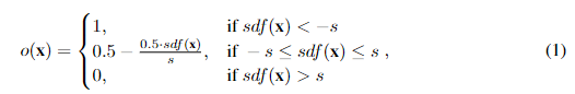 其中 sdf(x) 表示 x 的有符号距离函数(Signed Distance Function,SDF)值。