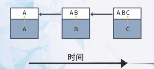 由于每个哈希值都与原始数据存在一一对应的关系,在此情况下我们可以把哈希值类比为其中所包含的原始数据内容。类似于Previous block header hash可以被视为前一区间所包含的具体内容描述。而MerkleRoot则代表了当前区间内的所有交易信息集合。这样一来,在这种情况下每一个区间的块头不仅记录了本区间内所有新发生的交易事件,并且也会同时记录上一区间的相关交易信息。同样地,在此基础之上,前一区间的块头还会连接到再往前的一个区间。综上所述