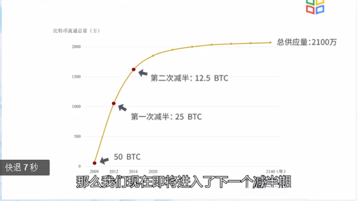 自2009年1月以来,每十分钟系统就会产出50枚比特币(与传统金融机构货币的发行相当)。每四年时间(约相当于21万区块的数量?4.4 加密数字货币的减半),系统的比特币产量将减少一半。至2140年时为止,所有比特币将被耗尽。