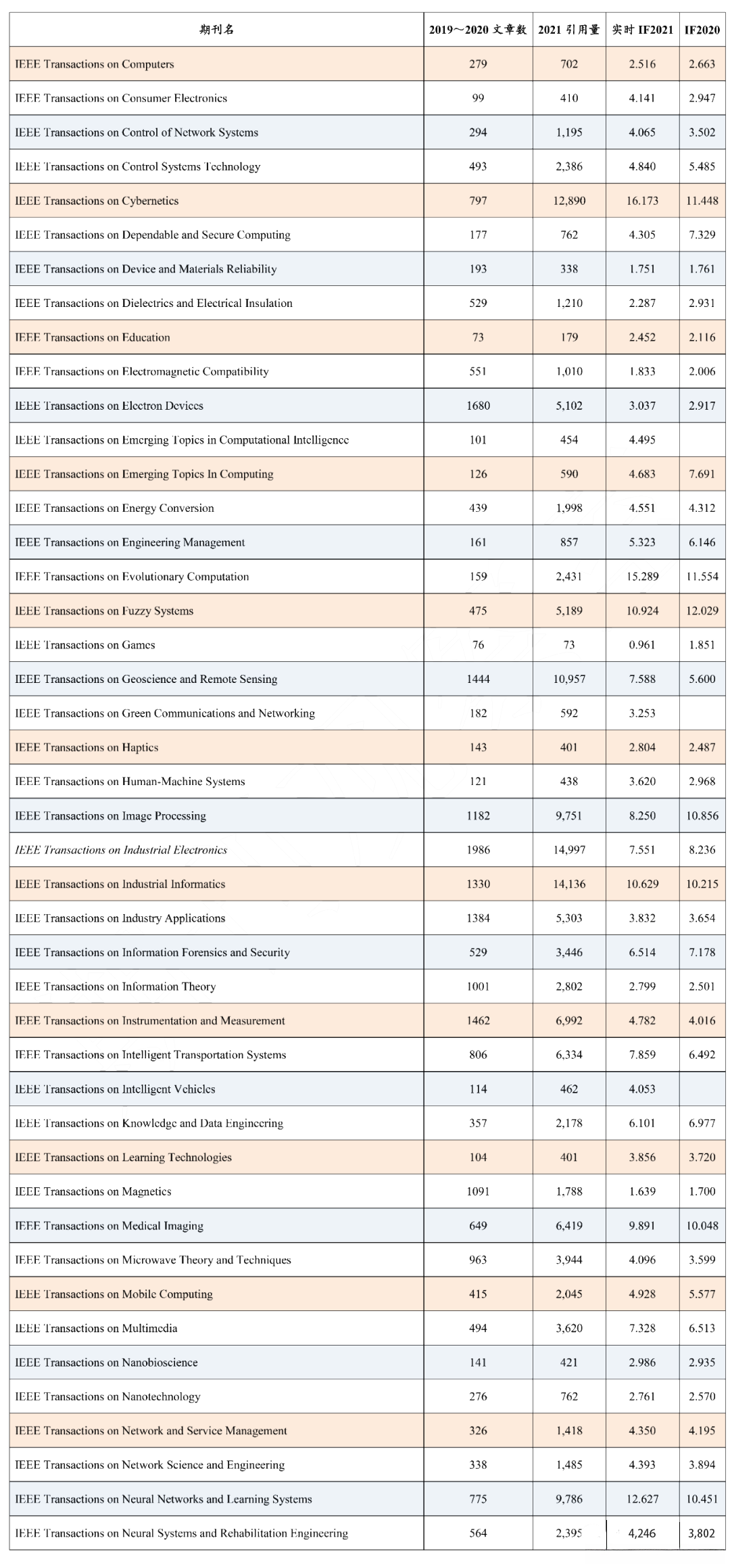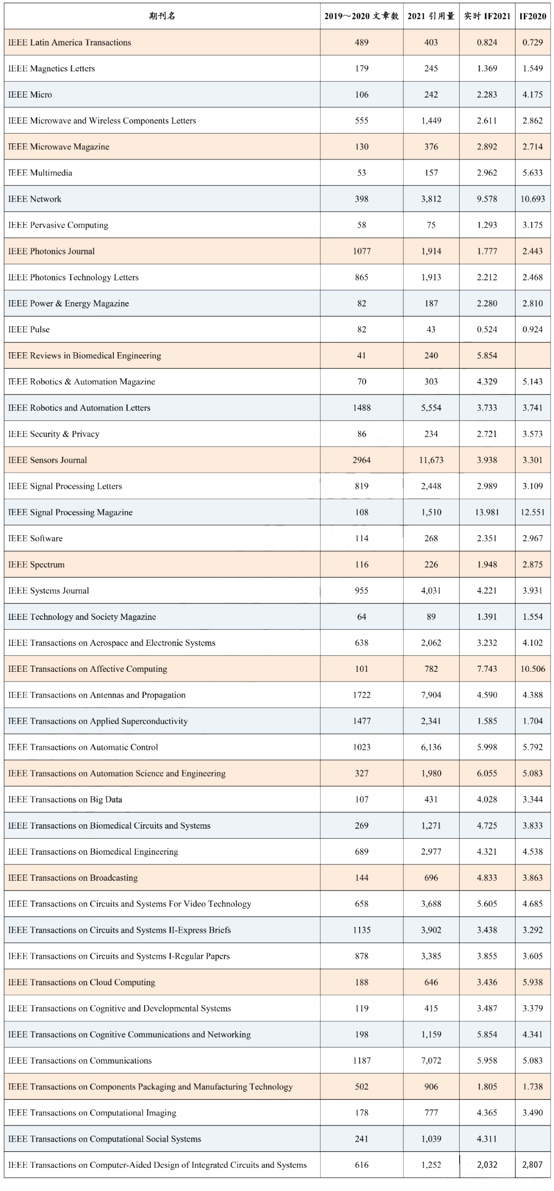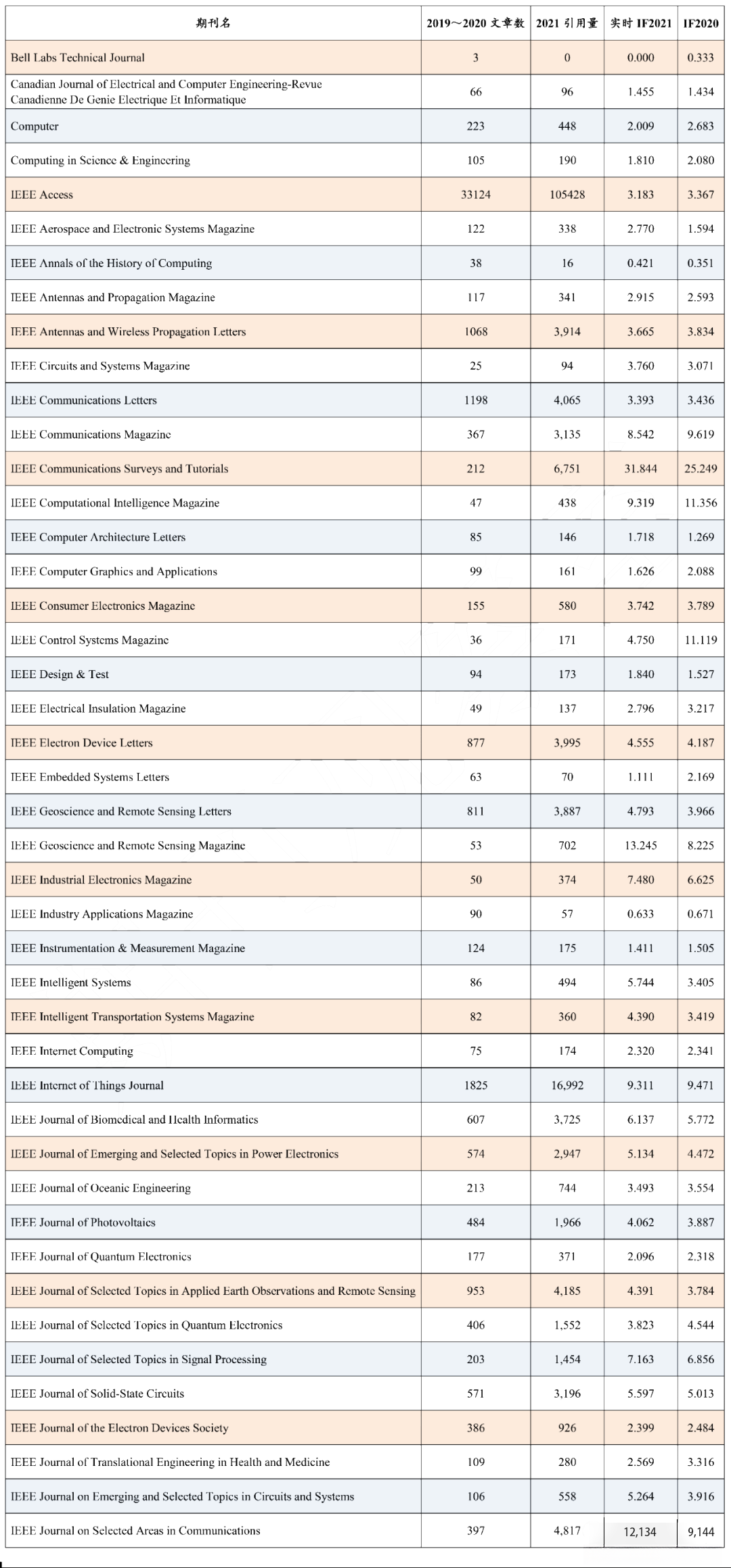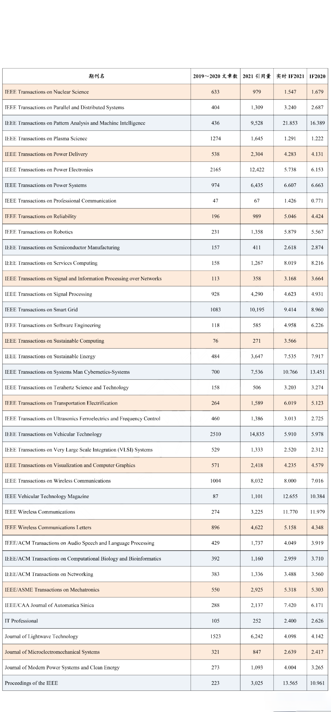 2022年IEEE旗下所有被SCI(SCIE)收录期刊的实时IF(影响因子)如下,大家可以进行参考: