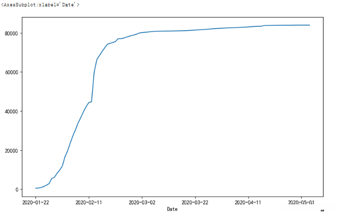 首先来看一下中国累计确诊人数趋势,可见爆发之初是快速上升的,如下: