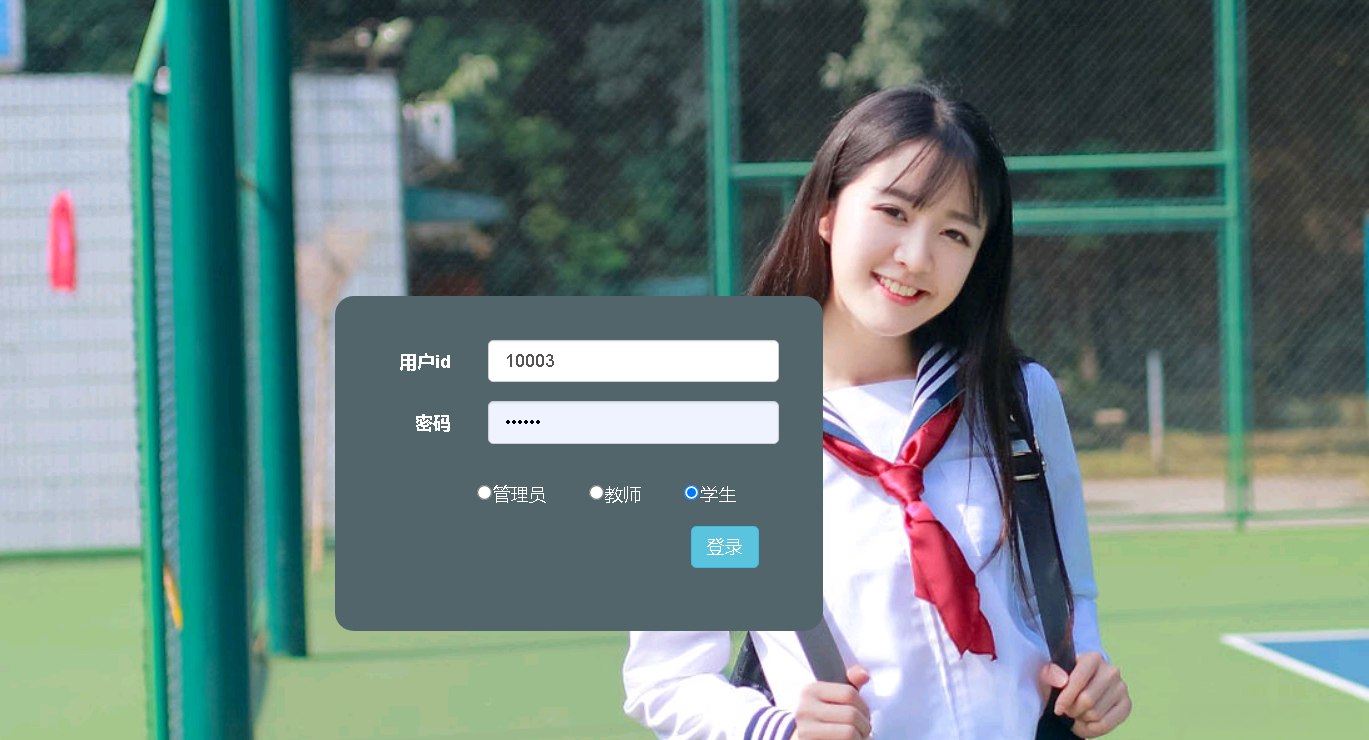 **用户登录:**用户登录是选择角色进行登录:管理员、教师、学生