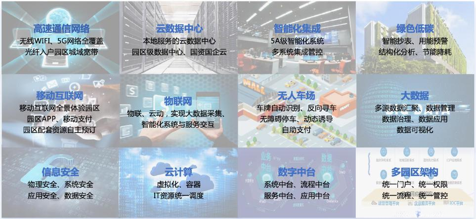 技术赋能管理 ,构筑企业核心竞争力。 通过智慧园区建设实现经营决策数智化、业务管理体系化、基础设施集约化、园区服务生态化、运维管理自动化、技术支撑能力化。
