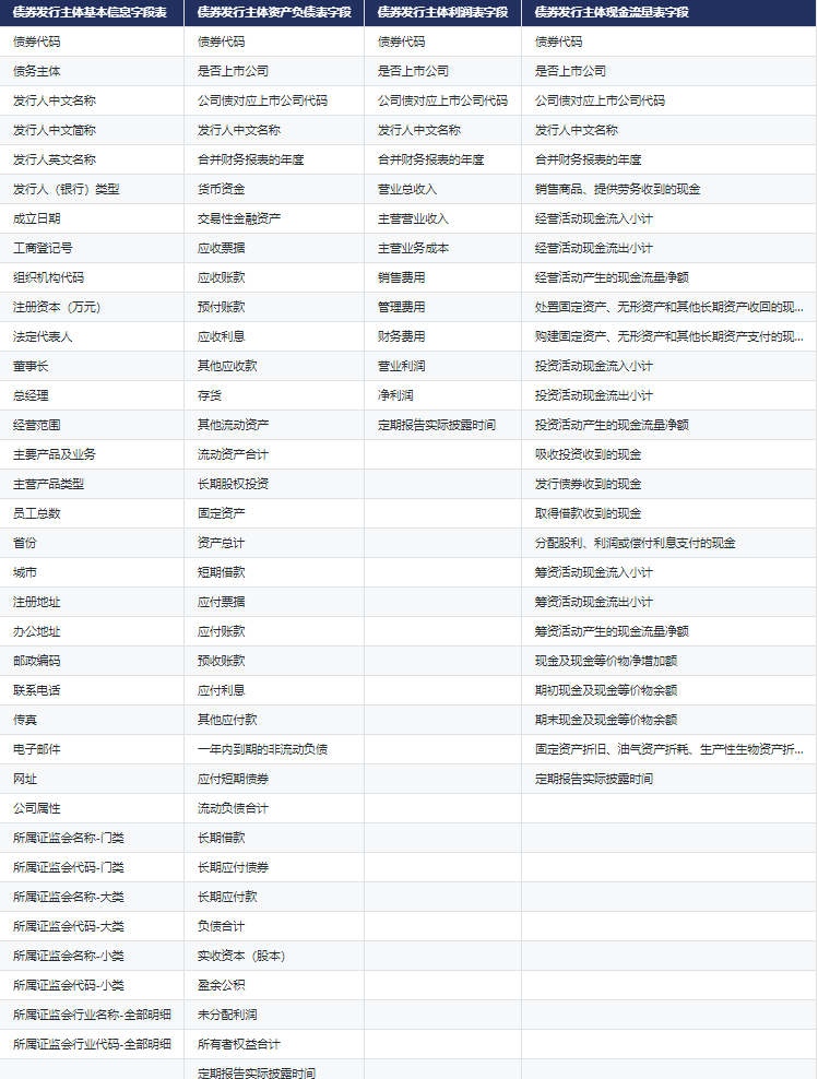 债券市场的研究对于构建债券市场新格局具有重要意义。因此,CnOpenData推出了中国债券市场债券信息数据,涵盖债券信息和发行主体信息两个部分,具体分为债券基本信息表、债券分类表、债券信用评级表、债券募集发行情况表、债券发行主体基本信息表、债券发行主体财务报表 等,可以为研究资本市场问题提供数据基础。