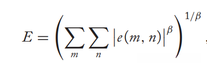 where e(m, n) is the normalized error of the n-th coefficient in the m-th channel and β is a constant with a value typically between 1 and 4.